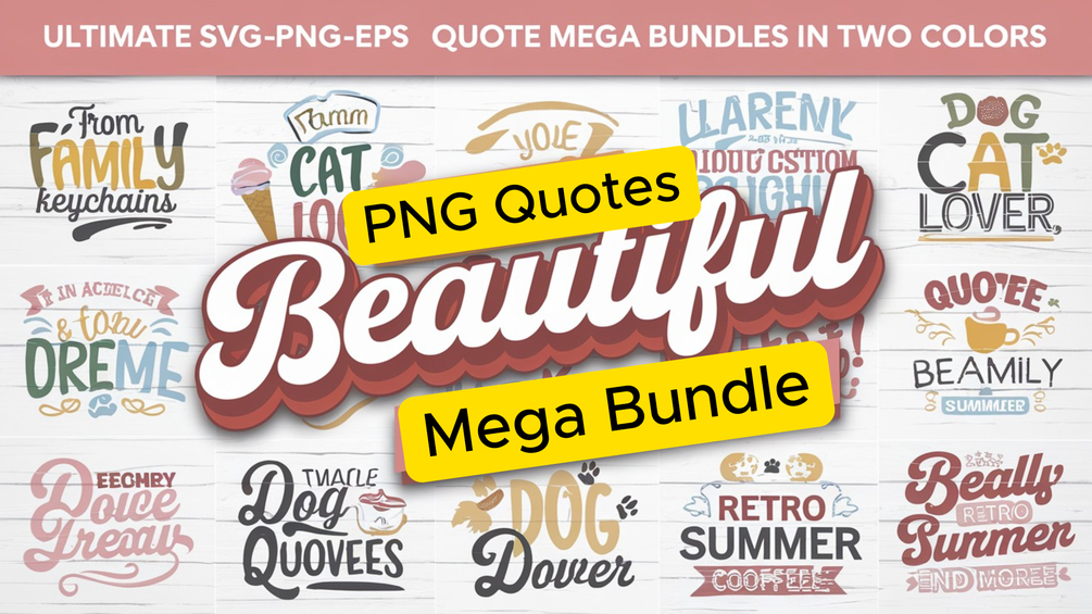 Discover our SVG-PNG-EPS 40 Quote Mega Bundle with vibrant designs for every occasion! From funny Christmas quotes and cat & dog graphics to inspirational quotes and seasonal designs, elevate your crafts and personalize gifts with our diverse collection. Perfect for all your creative projects!